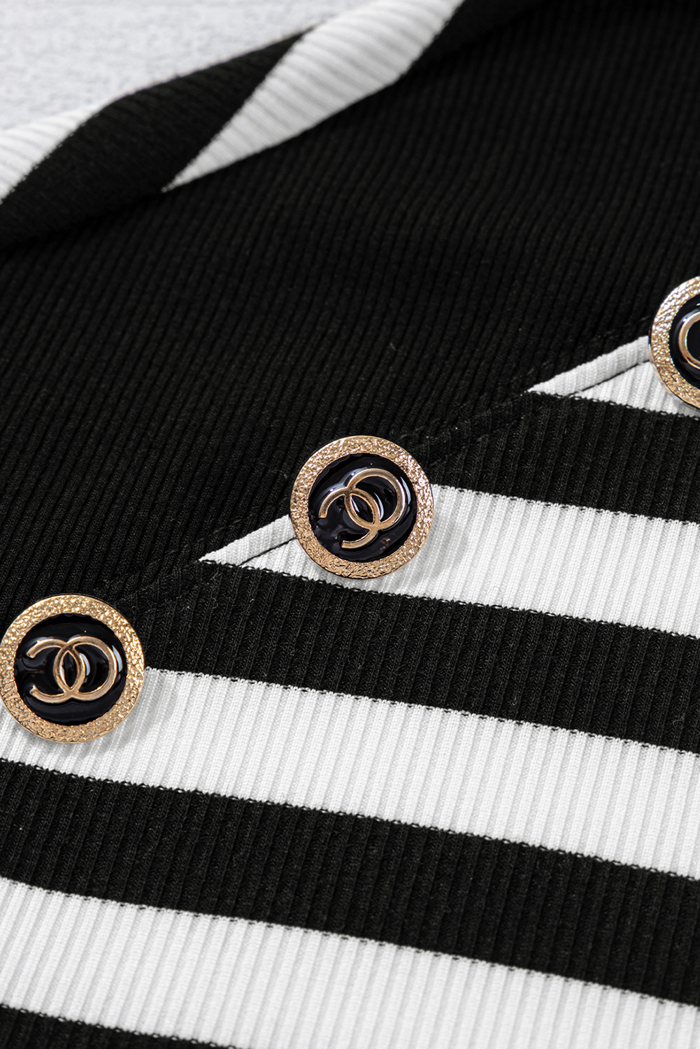 Black Stripe Crochet Hollow-out Back Buttoned Shoulder V Neck Top