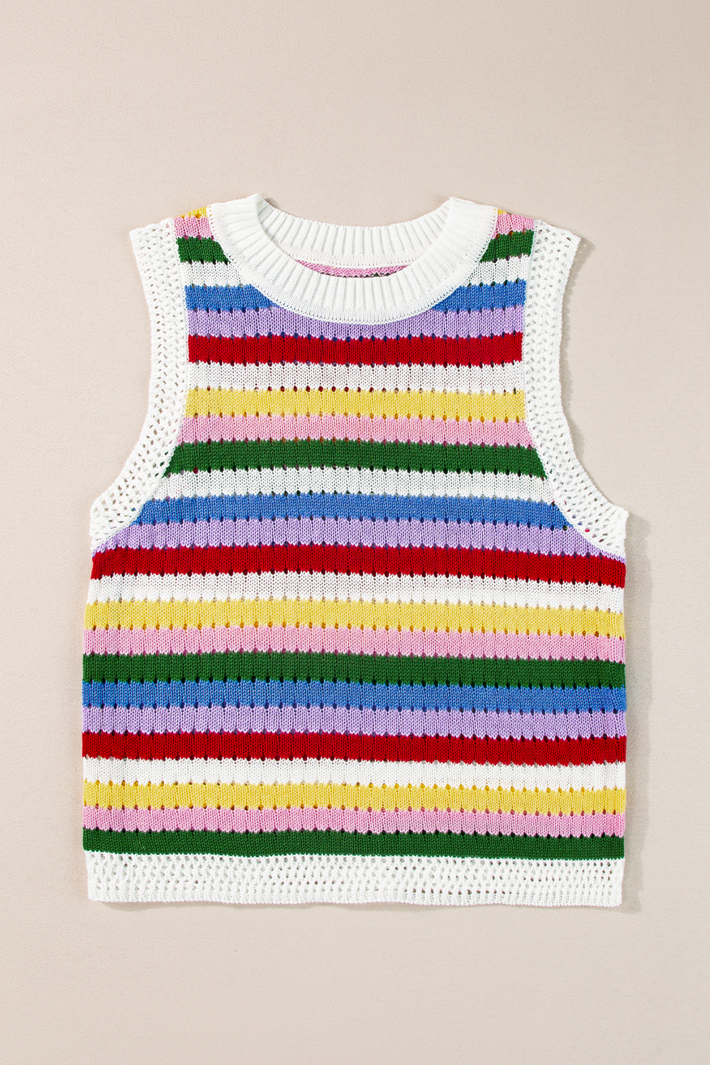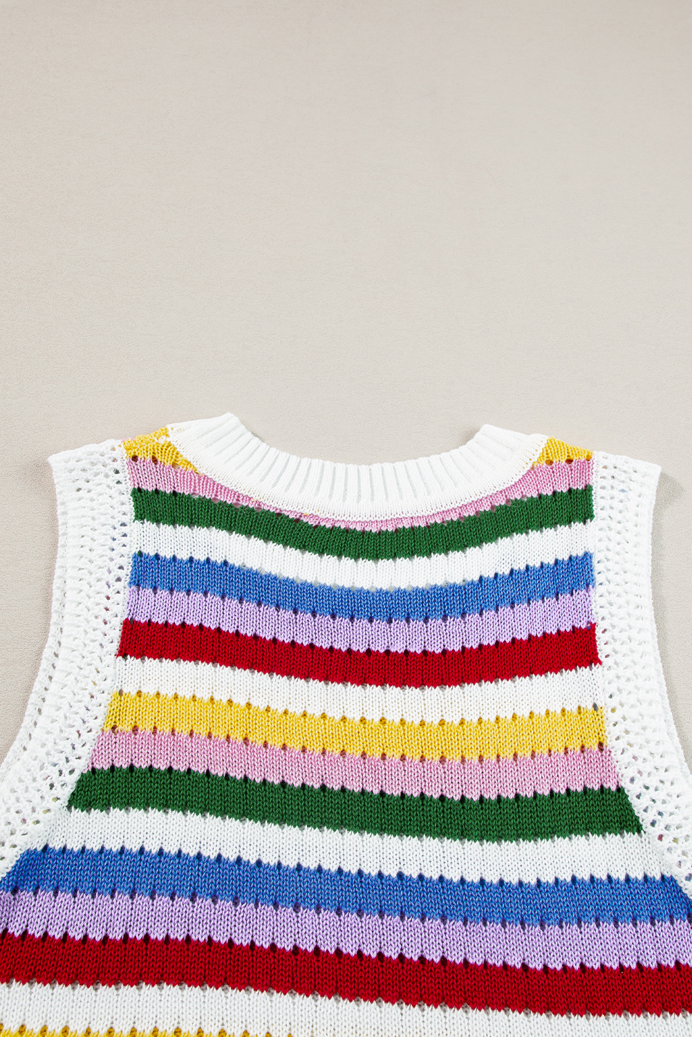 Multicolour Striped Knitted Eyelet Slim Sweater Vest