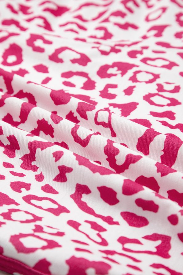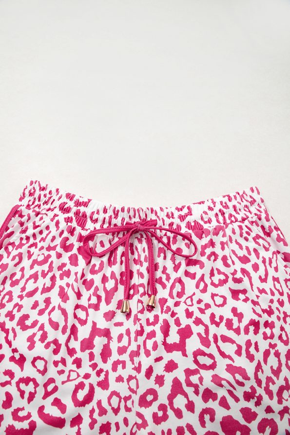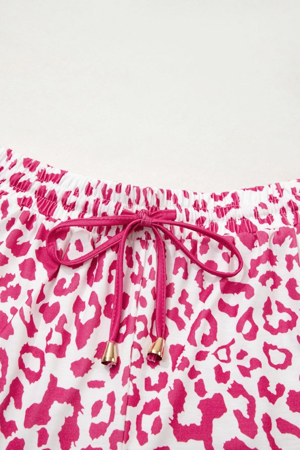 Pink Leopard Elastic Waist Lace up Contrast Trim Casual Shorts
